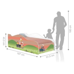 A Cama Carro Solteiro conta com adesivagem nos painéis, com design moderno e direcionado para o conforto, bem-estar e da criança, conferindo um ambiente alegre, colorido e divertido.