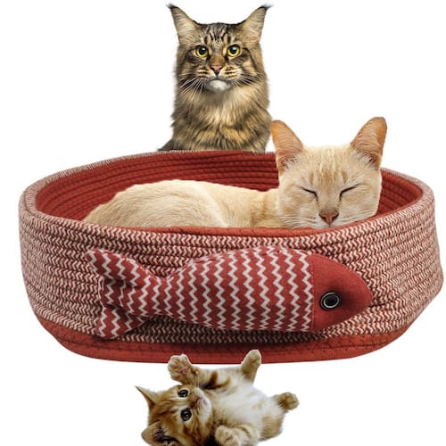 Com 4 fios de corda de algodão trançados com acabamento em tecido lavável, essa caminha é super resistente e ideal para o seu gatinho rasquear e descansar. Funciona também como um arranhador natural!