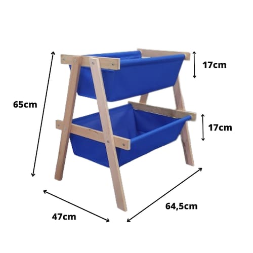 Dimensões: - Estrutura: 64,5 cm de Largura x 65 cm de Altura x 47 cm de Profundidade - Cesto Menor: 57 cm de Largura x 17 cm de Altura x 31 cm de Profundidade - Cesto Maior: 57 cm de Largura x 17 cm de Altura x 45 cm de Profundidade