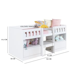 Surpreenda seu filho com a Cama Infantil Alta 2 Portas Ilha bela Art in M?veis! Moderna, segura e cheia de estilo, ela conta com grade protetora antiqueda, escada com cantos arredondados e espa?o inteligente com nichos, prateleira e portas basculantes. Produzida em MDP com acabamento acetinado, suporta at? 100kg e acomoda colch?o solteiro 78x188cm. Uma solu??o criativa, funcional e confort?vel para o quarto das crian?as!