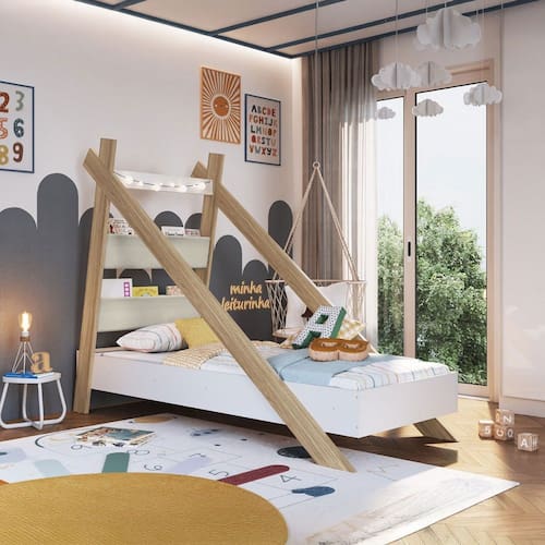 O(a) Cama Infantil Cabana com Livreiro Itapuã/Branco - Completa Móveis é produzido em MDP na escala de brilho Fosco, e possui um grau de dificuldade de montagem: Médio.