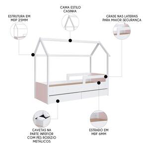 A Cama Infantil Casinha Com 2 Gavetas Infix C06 Branco/Rosa, da Mpozenato, é perfeita para quem procura unir funcionalidade e diversão no Quarto Infantil.