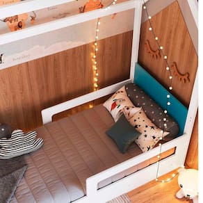 - Design em formato de casinha, que estimula a imaginação das crianças na hora das brincadeiras, e também torna a hora de dormir mais atrativa, incentivando uma rotina de sono saudável.