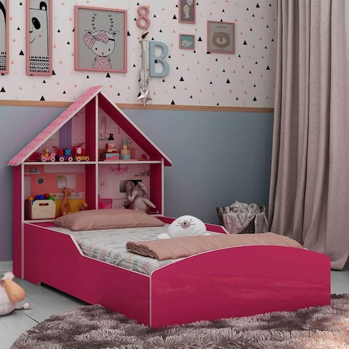 A Cama Casinha foi desenvolvida especialmente para o público infantil feminino. Além do conforto, que é essencial, ela foi pensada para ser também a diversão das meninas. Com estrutura e design em formato de casinha, possui arte impressa decorativa que simulam uma casa de brinquedo. As divisórias servem tanto como prateleiras de apoio, quanto para brincar de bonecas. Acabamento: Pintura UV Acabamento da Prateleira: Pintura Acompanha Cama Auxiliar: Não Acompanha Colchão: Não Altura: 131,5 cm Altura do Estrado até o Chão: 16 cm Ambiente Principal: Quarto Infantil calculo: unidade Complexidade da Montagem: Média: pode ser montado por mais de uma pessoa e/ou necessite de maior conhecimento para montagem Cr: Pink Ploc Cr do Produto: Pink Ploc Cr Flex: Não Escala de Brilho: Brilhante Escala de Brilho da Prateleira: Brilhante Estilo: Contemporâneo Itens Inclusos: 1 Cama E Manual De Montagem. Largura: 114,5 cm Linha ou Coleção: Casinha Manual de Especificação Técnica: https://cdn2.madeiramadeira.com.br/atributo/gelius/784633-casinha-090-cm.pdf Manual de Montagem e Instalação: https://cdn2.madeiramadeira.com.br/atributo/gelius/784634-casinha-090-cm.pdf Material da Prateleira: MDP Material do Estrado: Madeira Material Principal: MDF/MDP Montagem Flex: Não Necessita Montagem: Sim Origem do Produto: Nacional Permite a Utilização de Cama Auxiliar: Não Peso: 39 kg Peso Máximo por Prateleira: 5 kg Possui Baú: Não Possui Gavetas: Não Possui Pés: Não Possui Portas: Não Possui Prateleiras: 02 Profundidade: 211,5 cm Recomendações de Uso, Manutenção e Limpeza: A Limpeza Do Produto Deve Ser Feita Por Meio Do Uso De Um Pano, Umedecido Com Água, e Um Pano Seco. é Importante Para Fazer a Limpeza Do Móvel Nunca Utilizar Produtos Químicos Ou Abrasivos. Para Conservar o Padrão De Qualidade Dos Produtos Gelius, Nunca Arraste Um Móvel Se Este Estiver Cheio. Nunca Puxe o Móvel De Frente Para Você, Pois Ele Pode Balançar e Provocar Acidentes. Sistema de Montagem: Parafusos, Cavilhas E Minifix. status-cadastro: Aprovado Suporta Até (kg): 110 kg Tamanho: Tamanho do Colchão Indicado (L x C): 88cm x 188cm Tipo de Cama: Convencional Tipo de Colchão: Solteiro Tipo de Estrado: Fixo