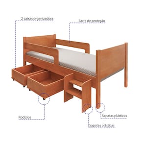 Cama Infantil Com 2 Baus Organizador E Escada Luna Plus Nature - Marrom