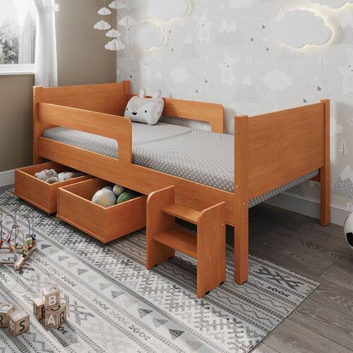 Cama Infantil com 2 Baus Organizador e Escada Mdf Luna Plus Nature - Marrom