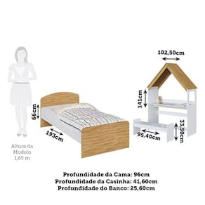 Banco: 33,50 x 95,40 x 25,60 (Alt x Larg x Prof - cm) Acompanha Colchão: Não Acompanha Dossel: Não Altura do Conjunto: 66 cm Ambiente Principal: Quarto Infantil codigo_ean: 7900288217998 Cor: Branco Brilho/Amêndoa Cor do Produto: Branco Brilho/Amêndoa Informação Complementar: 1x Cama Infantil 100% Mdf Lola Branco Brilho/Amêndoa Largura: 193 cm Altura: 66 cm Peso: 24,99 kg Profundidade: 96 cm Necessita Montagem: Sim