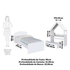 Banco: 33,50 x 95,40 x 25,60 (Alt x Larg x Prof - cm) Acompanha Colchão: Não Altura do Conjunto: 141 cm Ambiente Principal: Quarto Infantil codigo_ean: 7900288217981 Cor: Branco Brilho Cor do Produto: Branco Brilho Informação Complementar: 1x Escrivaninha Infantil Montessoriana Casinha 100% Mdf com Banco Petra Branco Brilho Necessita Montagem: Sim