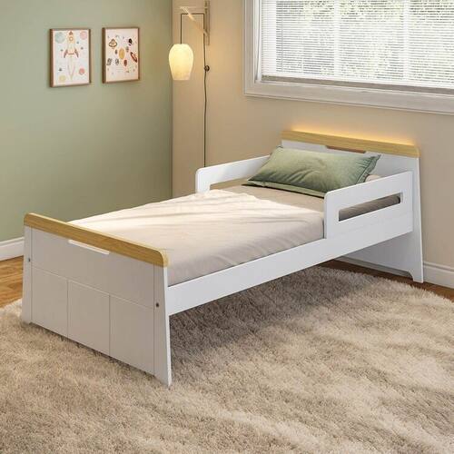1x Cama Solteiro com Led Petit MadeiraOriginals Branco/Mel Largura: 194 cm Altura: 76 cm Peso: 30,4 kg Profundidade: 104 cm Necessita Montagem: Sim