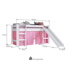 Cama Infantil Elevada com Escorregador da Completa Móveis é um produto que foi pensando em unir conforto e diversão. A cama possui 02 degraus e escorregador para o acesso da criança a cama. Na parte inferior tem um espaço para que elas possam brincar e se divertir de diversas maneiras. Acompanha cortina na cor rosa e presilhas para fixação.Medidas do colchão indicado(não acompanha) 188x78 cm