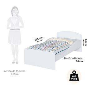 Características: Acabamento em pintura UV Atóxica Cama suporta até 90kg Estrutura 100 em MDF 15mm Material do estrado madeira Não acompanha colchão Produto Flex, pode ser montada como cama simples ou montessoriana Tamanho do colchão indicado -LxC - cm-: 88 x 188 -Solteiro- Tipo de estrado regulável em 2 posições -28,5 e 9,8 - cm- Tipo de grades fixas