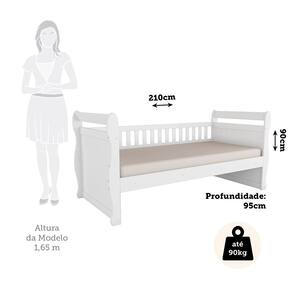 Características: Acabamento em pintura UV Atóxica Bordas arredondadas e laqueadas Cama suporta até 90kg Estrutura 100 em MDF 12mm Grade e cabeceiras MDF 25 e 12 mm e as barras centrais em MDF 25mm Não acompanha colchão Material do estrado madeira Tamanho do colchão indicado -LxC - cm-: 88 x 188 -Solteiro- Tipo de estrado fixo -altura 36,4cm- Tipo de grades fixas