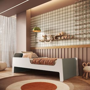 Cama Infantil Solteiro Em MDF Mick Mobikasa A Cama Infantil Mick Mobikasa une design moderno e funcionalidade, sendo ideal para transformar o quarto das crianças em um ambiente acolhedor e cheio de estilo. Com estrutura robusta e acabamento em branco com detalhes em Verti, essa cama traz um toque contemporâneo e lúdico ao espaço. Seu formato com laterais elevadas proporciona maior segurança para os pequenos, enquanto a altura do colchão ao chão -36,5 cm- facilita o acesso, incentivando a autonomia da criança no dia a dia. Com dimensões generosas de 209 cm de comprimento e 93 cm de largura, a Cama Mick oferece conforto e espaço adequado para acompanhar o crescimento dos pequenos. Produzida com materiais de alta qualidade, é perfeita para compor ambientes criativos e funcionais, acompanhando a rotina da infância com charme e durabilidade.