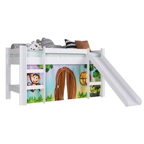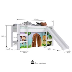 Cama Infantil Elevada com Escorregador da Completa Móveis é um produto que foi pensando em unir conforto e diversão. Fabricada em MDP, a cama possui 2 degraus e escorregador para o acesso da criança a cama. Na parte inferior, existe um espaço para que os pequenos possam brincar de diversas maneiras. Acompanha cortina com tema zoológico. NÃO INCLUI COLCHÃO.