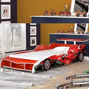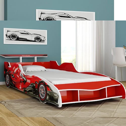 Características: Adesivos decorativos Design em formato de carro de corrida Estrutura 100 MDF Para colchão de 88cm