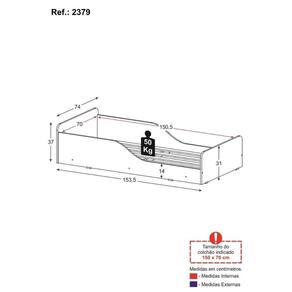 - Colchão não incluso (tamanho indicado: 150x70cm).