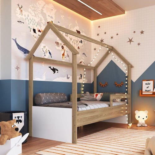 O quarto da sua criança ficará ainda mais charmoso com a nossa Cama Infantil Montessoriana da Completa Móveis. O conceito Montessori traz o melhor do estilo para o quarto de bebê ou infantil. Um conceito lúdico para estimular a autonomia e aperfeiçoar o potencial criativo das crianças desde a 1ª infância. Com grades laterais de proteção e com cantos arredondados, propicia mais segurança pro seu pequeno. Possui ainda duas possibilidades de montagem na altura do estrado (colchão), sendo rente ao chão ou 21,2 cm. acima do chão. Opcional em várias combinações de cores, confira! O produto é entregue desmontado. Acompanha Cabeceira: Sim Acompanha Cama Auxiliar: Não Acompanha Colchão: Não Altura do Estrado até o Chão: 20 cm Ambiente Principal: Quarto Infantil codigo_ean: 7909903342725 Complexidade da Montagem: Baixa: pode ser montado por uma pessoa sozinha Cor: Aveiro Oak/Branco Cor do Produto: Aveiro OAK/Branco Escala de Brilho: Fosco Itens Inclusos: 1 Cama, Manual de Montagem e Kit Ferragens Linha ou Coleção: Linha Infanto Manual de Montagem e Instalação: https://product-hub-prd.madeiramadeira.com.br/856203/documents/e744dffd-a4cc-4945-bb09-666f56369b5d78996714694137899671469420.pdf Material do Estrado: MDF Material Principal: MDP Necessita Montagem: Sim Origem do Produto: Nacional Permite a Utilização de Cama Auxiliar: Sim Peso: 38,6 kg Possui Baú: Não Possui Gavetas: Não Possui Pés: Não Possui Portas: Não Possui Prateleiras: Não Recomendações de Uso, Manutenção e Limpeza: Use um pano levemente umedecido com água, seguido de pano seco. Não utilize produtos químicos ou abrasivos. Sistema de Montagem: Sistema de montagem via parafusos, cavilhas, sistema minifix, parafusos união e porcas elípticas. Suporta Até (kg): 80 kg Tamanho da Cama: Infantil Tamanho do Colchão Indicado (L x C): 78cm x 188cm Tipo de Cama: Montessoriana Tipo de Colchão: Solteiro Tipo de Estrado: Fixo