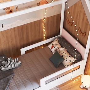A Cama Infantil Montessoriana Casinha para Menino e Menina de Solteiro com Proteção Lateral da Completa Móveis traz um conceito Montossori lúdico com o conceito para estimular a autonomia e aperfeiçoar o potencial criativo das crianças desde a primeira infância. Com grades laterais de proteção e com cantos arredondados, propicia mais para o seu pequeno. Possui ainda duas possibilidades de montagem na altura do estrado (colchão).