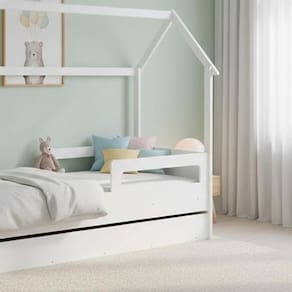 Características do Produto:- Estrutura em MDP resistente- Estrado em MDF de alta qualidade- Acompanha cama auxiliar com rodízios- Suporta colchões padrão solteiro (78 x 188 cm)- Grades laterais de proteção e cantos arredondados- Montagem versátil: pode ser usada como cama montessoriana- Design em formato de casinha lúdica e decorativa