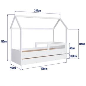 A Cama Infantil Montessoriana possui as seguintes dimensões: 201cm de largura, 163cm de altura e 95cm de profundidade. O colchão indicado tem as medidas de 188cm x 78cm. O estrado fica a uma altura de 21cm do chão e suporta até 80kg em cada cama. Além disso, o estrado possui uma regulagem de altura e os suportes dos lastros são feitos em madeira maciça, garantindo estabilidade e segurança.