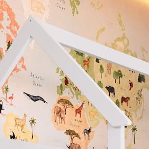 Fabricada em MDP com acabamento fosco, a cama possui duas opções de montagem: rente ao chão ou elevada a 21,2 cm, permitindo que a criança suba e desça com facilidade. As grades laterais com cantos arredondados garantem a durante o sono.
