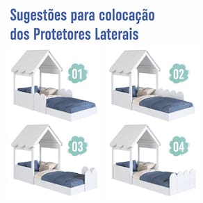 Características Estrutura Modelo Casinha em MDP Acabamento Fosco Protetores Laterais Móveis que Permitem Serem Movimentadas ou Trocadas de Posição Telhadinho com cantos arredondados Estrado Lastros em MDF cru Suporta até 80 kg sem Impacto IDEAL PARA COLCHÃO 188 X 78cm NÃO ACOMPANHA COLCHÃO