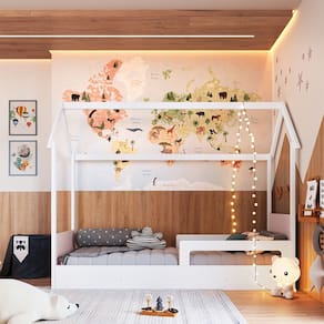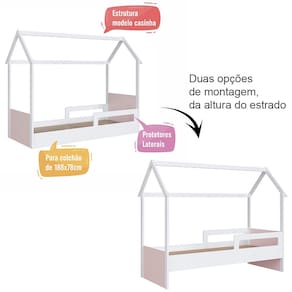 Cama Infantil Montessoriana Estilo Casinha CCM010 Linha Infanto Branco Rosa Completa Móveis - Branco | Rosa