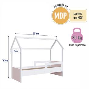Características Estrutura Modelo Casinha em MDP Acabamento Fosco Protetores Laterais Estrado Lastros em MDF cru Sapatas Plásticas Possui ainda duas possibilidades de montagem na altura do estrado, sendo rente ao chão ou 21,2 cm Suporta até 80 kg sem Impacto IDEAL PARA COLCHÃO 188 X 78cm NÃO ACOMPANHA COLCHÃO
