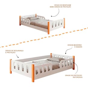 PRINCIPAIS BENEFÍCIOS - Opção de montagem com ou sem grade de proteção - Maior segurança para o sono infantil - Estimula a autonomia da criança no método montessoriano - Design moderno, funcional e visual leve - Estrutura pensada para acompanhar o crescimento infantil - Ideal para quarto infantil, quarto de bebê e quarto montessoriano
