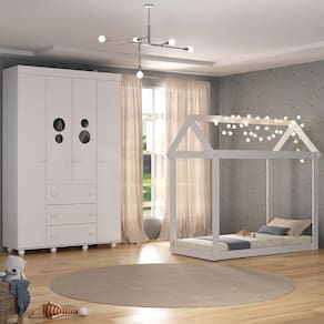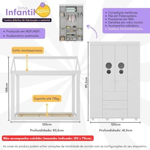 Transforme o quarto do seu pequeno em um espaço encantador e funcional com o Cama Infantil Montessoriana para Colchão 150x70cm com Guarda-Roupas Pimpolho Multimóveis MX4279. Este conjunto, produzido em MDP/MDF, apresenta um acabamento acetinado (cerca de 20% de brilho) que traz um toque de sofisticação e modernidade. A cama montessoriana, com seu design divertido em forma de casinha, não apenas proporciona um lugar seguro para dormir, mas também estimula a imaginação e a brincadeira, suportando até 70kg. NÃO acompanha colchão (tamanho indicado 150x70cm). O guarda-roupas é um verdadeiro destaque, com 4 portas que abrem para um espaço amplo, incluindo prateleiras e um cabideiro, perfeito para organizar todas as roupinhas e acessórios do seu filho. Além disso, conta com 3 gavetas que deslizam suavemente graças às corrediças metálicas, e portas com detalhes em vidro incolor que adicionam um charme extra ao ambiente. Para a segurança do seu pequeno, o guarda-roupas é equipado com um sistema antitombamento, oferecendo tranquilidade para os pais. Com esse conjunto, você garante não apenas um espaço bonito, mas também seguro para o desenvolvimento da sua criança.