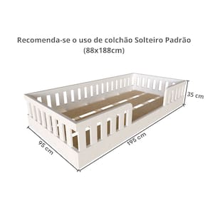 Estilo: Moderno Modular: Não Garantia: 03 Meses Altura (cm): 35 Descrição: Os Móveis devem ser escolhidos com muito carinho, independente de qual for o ambiente, pois eles fazem parte da rotina do dia a dia do nosso lar ou trabalho. Portanto, na hora de decidir qual modelo, lembre-se: além de ter a ergonomia necessária, a medida ideal, um design incrível, eles também devem cumprir suas funções com desempenho total, e na hora da escolha das cores, elas devem combinar com seu estilo e personalidade. Esse Ambiente Infantil possui um design encantador, que permite trazer outros elementos decorativos para compor o ambiente. Acabamento: Melamínico Largura (cm): 195 Possui Baú: Não Possui Pés: Não Tipo de Cama: Montessoriana Possui Portas: Não Possui Gavetas: Não Suporta Até (kg): 80 Profundidade (cm): 95 Tamanho da Cama: Solteiro Tipo de Estrado: Removível Acompanha Dossel: Não Escala de Brilho: Fosco Acompanha Colchão: Não Origem do Produto: Nacional Ambiente Principal: Quarto Infantil Material Principal: MDF/MDP Necessita Montagem: Sim Possui Prateleiras: Não Tamanho do Colchão: Solteiro Material do Estrado: MDP Acompanha Cama Auxiliar: Não Complexidade da Montagem: Média: pode ser montado por mais de uma pessoa e/ou necessite de maior conhecimento para montagem Altura do Estrado até o Chão: 35 Permite a Utilização de Cama Auxiliar: Não Recomendações de Uso, Manutenção e Limpeza: Limpar apenas com pano macio levemente umedecido. Marca: Bramov Móveis Cor do Produto: Branco Itens Inclusos: 1 Cama, Kit Ferragens e Manual de Montagem Sistema de Montagem: Parafusos e minifix Tamanho do Colchão Indicado (L x C): 88 x 188cm