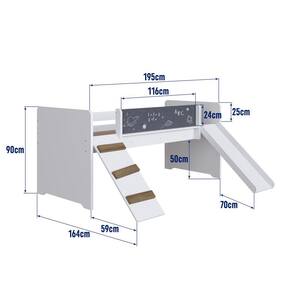 Caracteristicas: Material em MDP Cama suporta ate 50kg Estrado da cama: Lastros em MDF Cru Colchao indicado em cm.: Solteiro 188 x 78 Escada Escorregador Painel lousa Protetores nas laterais