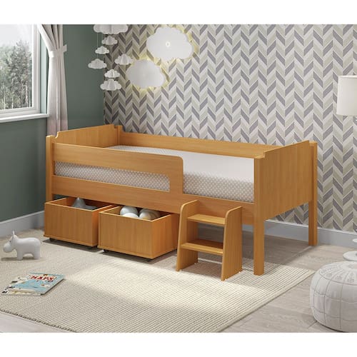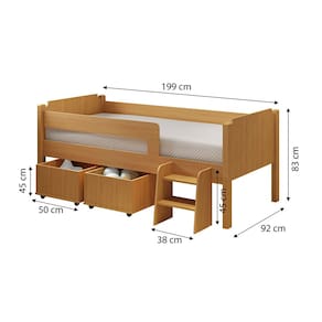 Cama Infantil Premium com 2 Baus Organizador e Escada Luna Plus Nature - Marrom