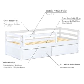 Diferenciais:Todo em Madeira, Grade de Proteção, 02 Gavetas.