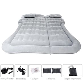 Cama Inflável Colchão Carro Camionete Veicular Viagem Cinza Cor: Cinza Colchão inflável Veicular Premium Colchão ideal para SUV, Caminhonetes, Caminhões e Ônibus. Porém pode ser utilizado em carros de passeio. Com esse colchão você consegue dormir de uma maneira muito confortável em seu carro. Item essencial para você que gosta de fazer longas viagens ou até mesmo acampar. Acessório prático e versátil , possui um tamanho bem reduzido quando está vazio. Conteúdo da Embalagem: - 1 Colchão de ar inflável veicular - 2 Apoio do colchão - 2 Travesseiros infláveis - 1 Bomba de ar elétrica - 1 Folha de reparos - 1 Bisnaga de cola Especificações técnicas: - Material: PVC, ABS, borracha e tecido flocado resistente e durável ; - Cor: Cinza; - Medida dobrado : 25 x 25 x 15 cm; - Medida mínima : 145cm x 43cm x 8cm; - Medida máxima : 180cm x 135cm x 10cm; - espessura do colchão: 10 cm - Peso: 1 kg. - Carga máxima: 360kg. Características: - Produto . - Produto com instalação simples. OBS: Esvazia em apenas 2 minutos pode variar de acordo com a pressão colocada . Marca: Não Informado