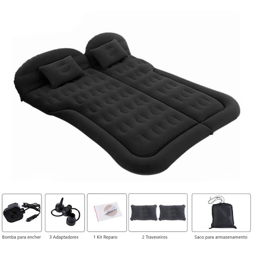 Cama Inflável Colchão Carro Camionete Veicular Viagem Preto - Cor: Preto