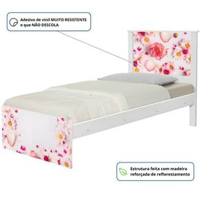 Cama Juvenil Zap com Cabeceira Rosas - Branco