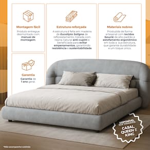 Disponível em tecidos boucle exclusivos e previamente selecionados de alto padrão e em medidas para os tamanhos (Casal, Queen ou King), a Cama Damie é estruturada em madeira de reflorestamento de Eucalipto Saligna. (possui resina natural anti-cupim) tratadas e beneficiadas para evitar empenamentos.
