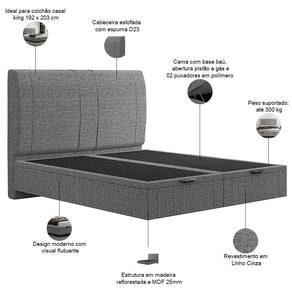 Cama King Baú Flutuante Com Cabeceira 195cm Spazio S04 Linho Cinza - Lyam Decor