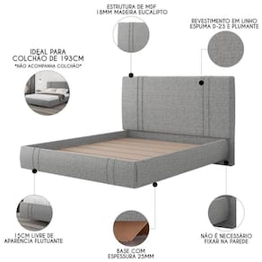 Que tal ter uma cama confortável, elegante e super moderna? Conheça a Cama King Flutuante Com Cabeceira 195cm Lyra S05 Linho Cinza, da Mpozenato!