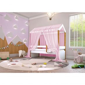 Cama Montessori Exclusiv Solteiro Com Colchão E Voal Rosa Cama Montessori Exclusiv Solteiro com Colchão e Voal Rosa