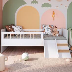 Cama Montessoriana Escada E Escorrega AFT010 traz o melhor estilo Montessori para o quarto do bebê ou infantil. Um conceito lúdico para aperfeiçoar o potencial criativo das crianças desde a primeira infância. Estrutura em MDP de 15 mm e 25 mm, e excelente acabamento em Finish Foil(Fosco). Composto por grades em pinus trazendo leveza e um toque diferenciado no design. Estrados em MDF Cru de 6 mm e sapatas plásticas. Escadinha e escorregador que trazem muita diversão ao ambiente e podem ser montados tanto no lado esquerdo quando no lado direito. Indicado para colchão de solteiro 188x78 cm. Suporta até 60 kg distribuídos. Este móvel chegará em sua casa separado em 02 volumes.