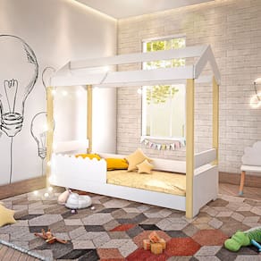 Cama Montessoriana Infantil Casinha Solteiro Jhulia Grade Branca - Branco E Natural Cama Solteiro Jhulia possui elegância e modernidade sem perder o conforto. Além de seu design divertido de ?casinha?.