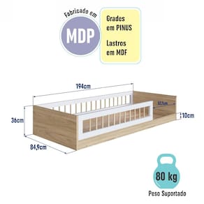 Medidas: Altura 36cm x Largura 84,9cm x Profundidade 194cm
