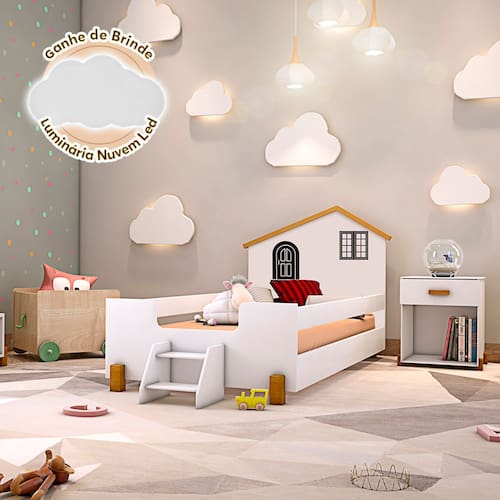 Cama Montessoriana Infantil Solteiro Belissima Preta - Branca E Amêndoa A Cama possui design Montessoriano, onde a cama fica na altura da criança, garantindo maior autonomia e auxiliando também em seu desenvolvimento. Além disso, é feita em MDF acompanhada de grades de proteção, escadinha e cabeceira em forma de casinha, que já vem adesivada com portinha e janelinha para decoração e lazer.
