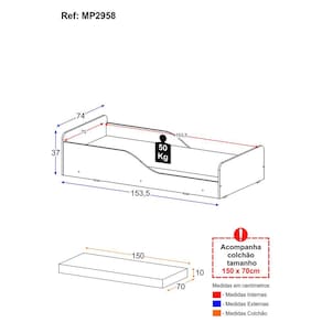 Além disso, a cama vem acompanhada de um colchão D20 extremamente macio que possui tratamento anti-ácaro e anti-alérgico. Essa combinação garante noites tranquilas de sono e protege as crianças contra alergias respiratórias. Com cantos arredondados e barras de proteção lateral, esta cama oferece toda a segurança necessária durante os momentos de descanso dos pequenos.