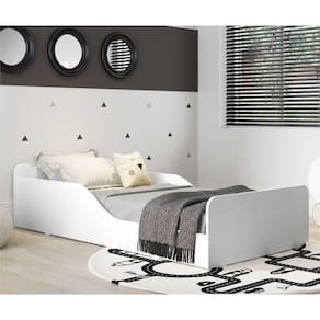 A Mini cama Branco Premium da Multimóveis possui sapatas plásticas, o que a deixa a baixa, com fácil acesso.