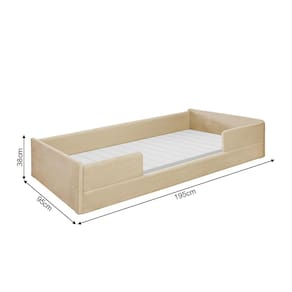 Produzida em madeira maciça com revestimento de tecido de excelente qualidade, vai proporcionar a criança acessibilidade, autonomia e um grande apoio no estimulo de seu desenvolvimento com segurança e beleza, na decoração do quarto. Características Tipo: Cama Montessoriana Modelo: Luana Cor: Bege Não Acompanha Colchão DIMENSÕES DO PRODUTO Solteiro: Altura: 38cm Largura: 95cm Comprimento: 195cm ATENÇÃO AS IMAGENS SÃO MERAMENTE ILUSTRATIVAS E PODEM SOFRER VARIAÇÕES DE COR E PEQUENOS DETALHES DE ACORDO COM O SEU MONITOR, ILUMINAÇÃO DO AMBIENTE E ATÉ MESMO A SUA PERCEPÇÃO VISUAL.