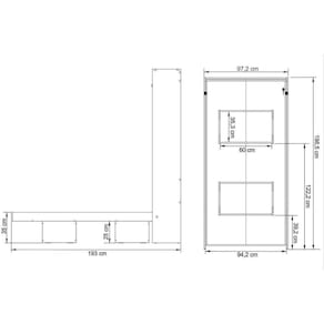Dimensões(Cm): Comprimento(Profundidade): 57,2cm x Largura: 97,2cm x Altura: 198,5cm