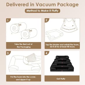 - Instruções de cuidados: nossa cama de cachorro possui uma capa removível e lavável com um fecho de zíper, facilitando a limpeza. Remova a inserção de espuma e a capa pode ser lavada em uma máquina. Observe que o enchimento de espuma não é lavável. Permita que a cama se expanda por 24 a 48 horas após a desembalagem.